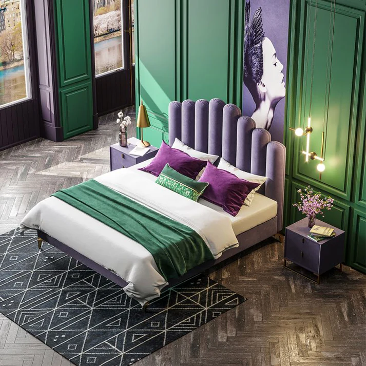 + Free Shippingسرير يتميز بديكور بتقاسيم انسيابية