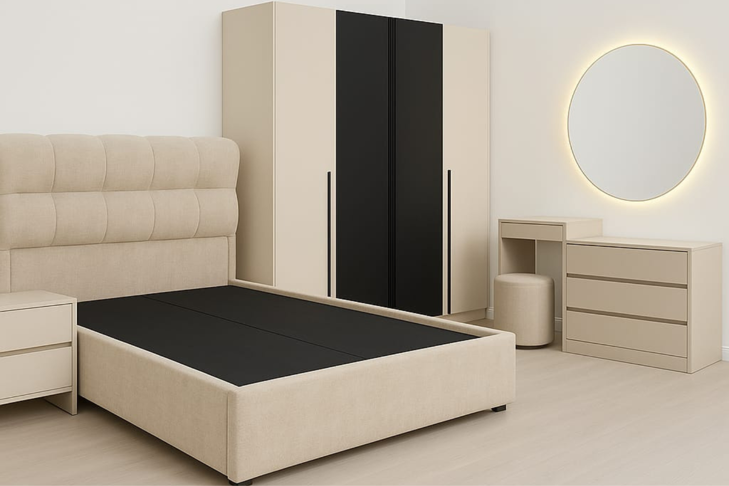 غرفة نوم بألوان فاخرة من خشب الميلامين مع مرتبة اوركيد