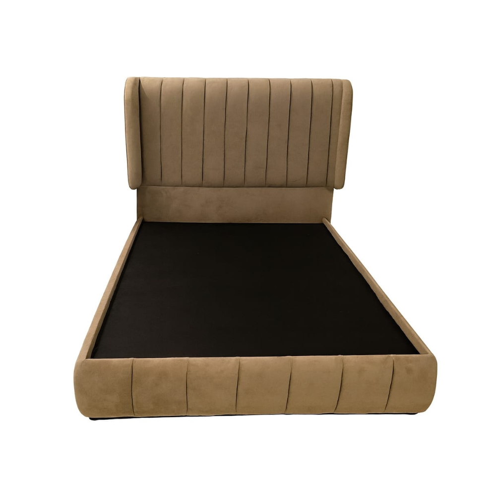 غرفة نوم سرير من قماش بوكليه وبمساحة تخزين اضافية في الدولاب